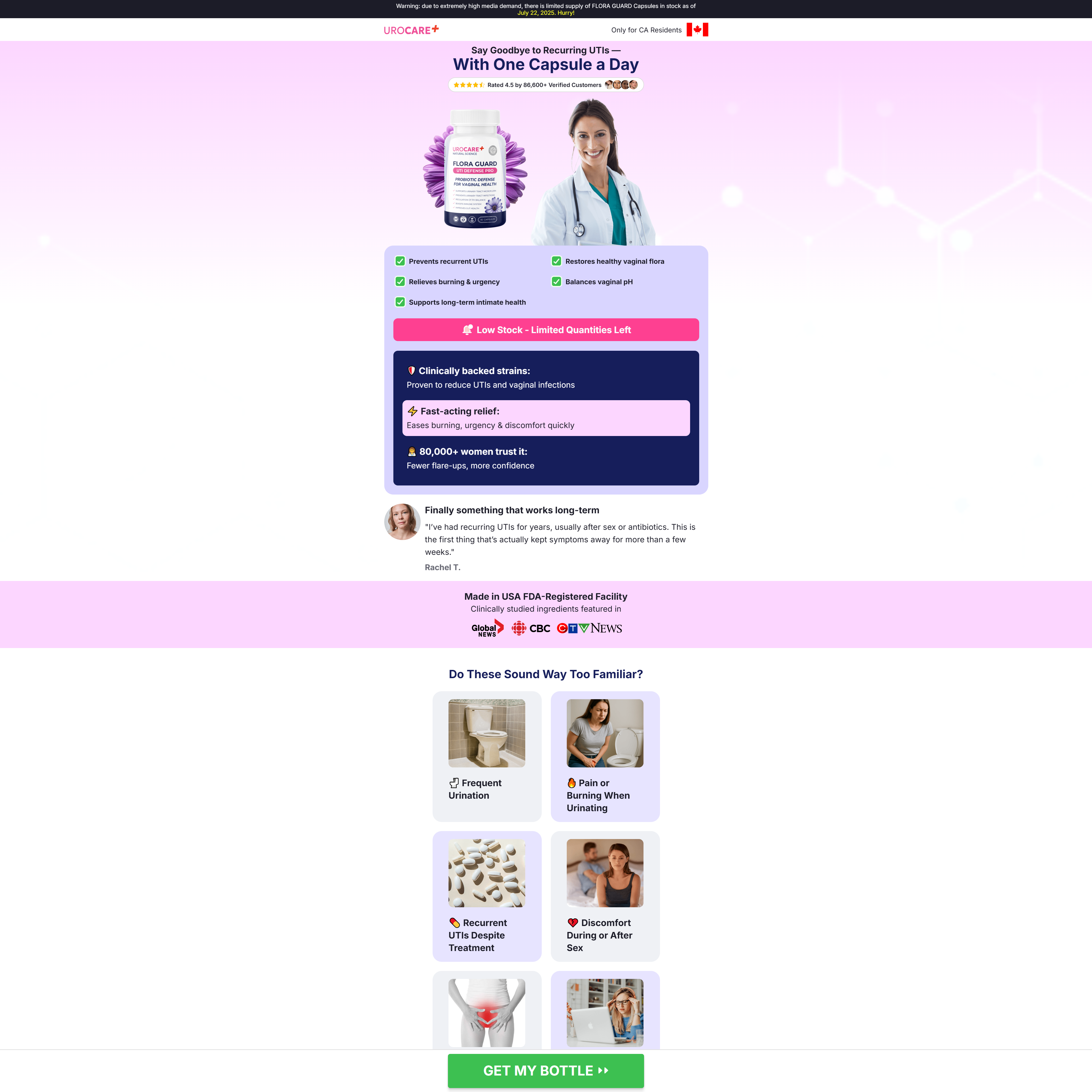 BUY 3 + GET 3 FREE! Urocare Flora in